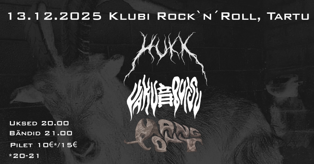 Järjekordselt saab taevas mürinat ja värinat. Klubis Rock`n`Roll on lavale astumas sel õhtul Hukk, Mang Ont ja Yakubutsu